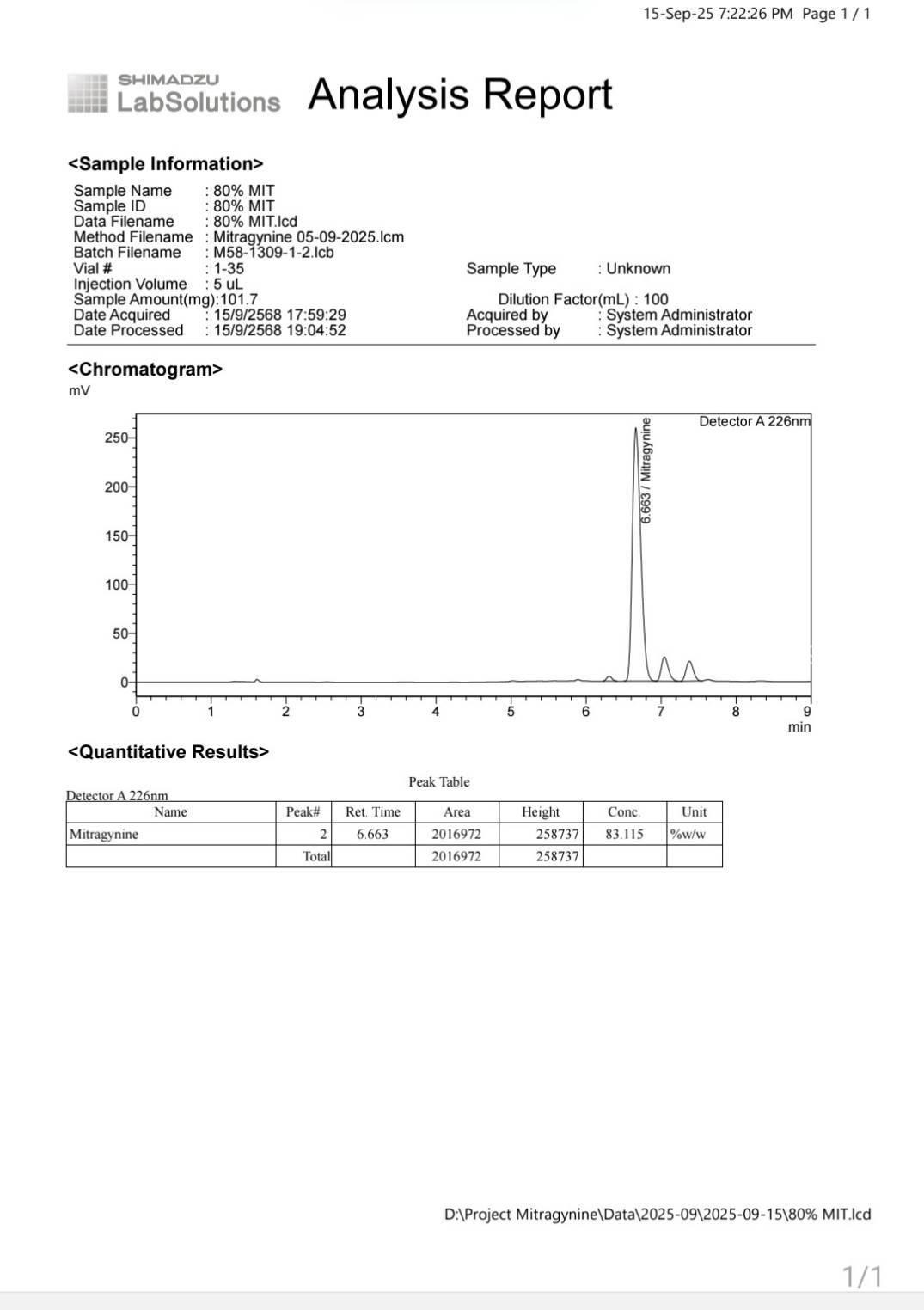 80% Mitragynine – Premium High-Quality for Advanced Formulations, Pharmaceutical Grade